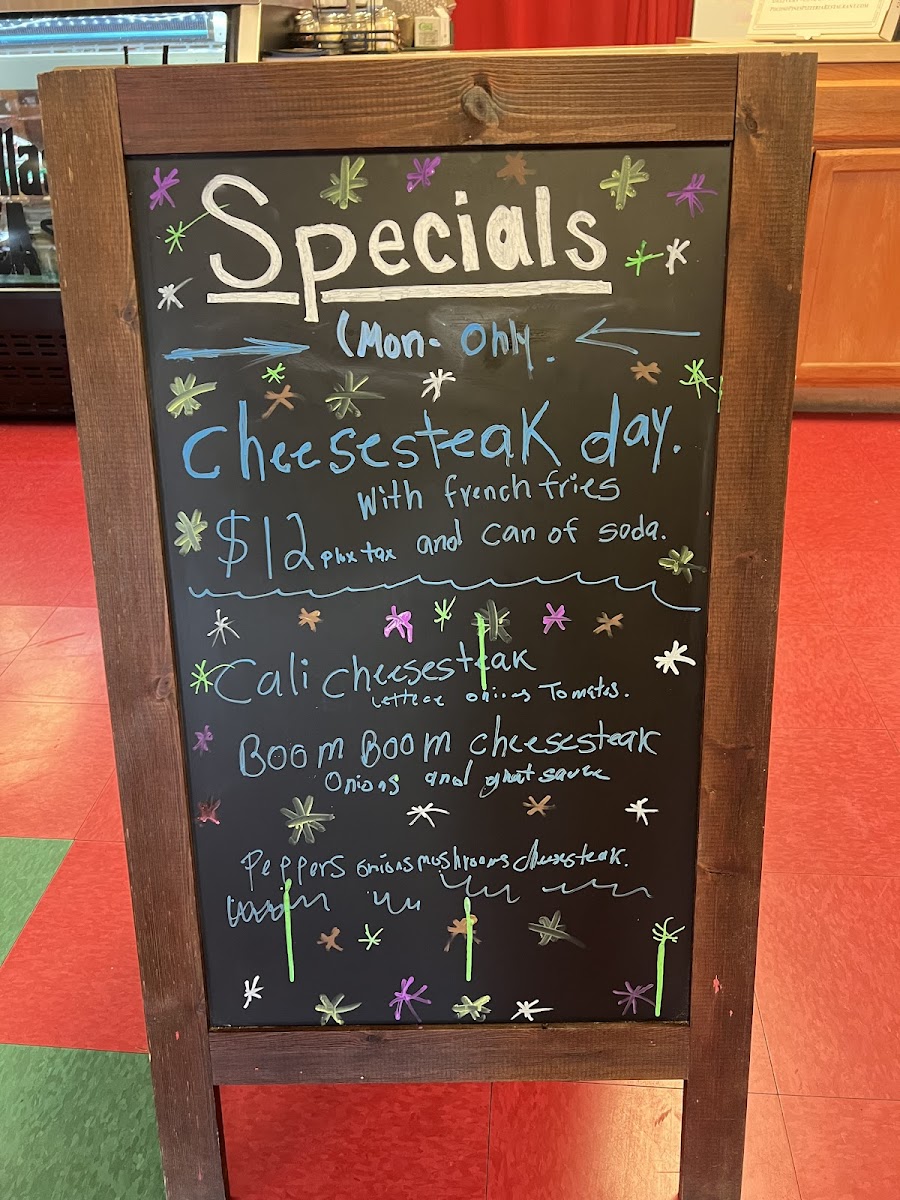 Onions, mushrooms, bell peppers, provolone cheese, fresh fries & pickles.